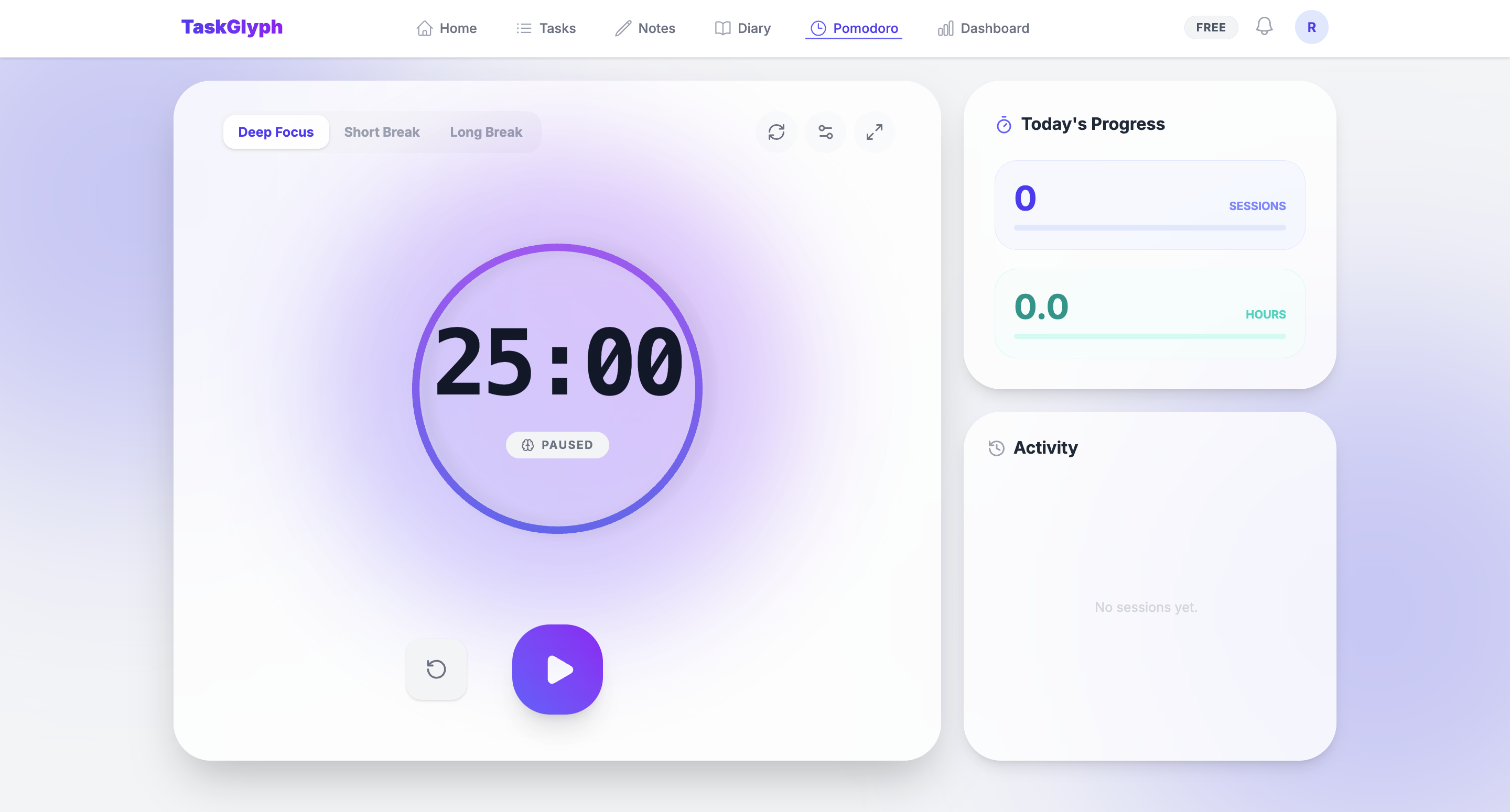 Beat procrastination with the built-in Pomodoro timer. Track focus sessions and breaks effortlessly, see your progress over time.